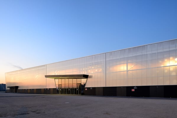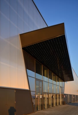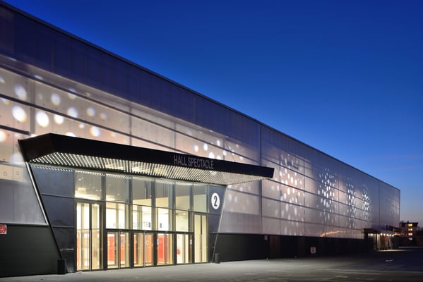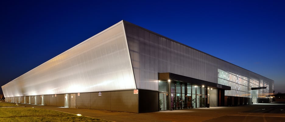 Bardage polycarbonate SABIC avec sérigraphie Désenfumage acoustique Parc des expositions de Chalons en Champagne