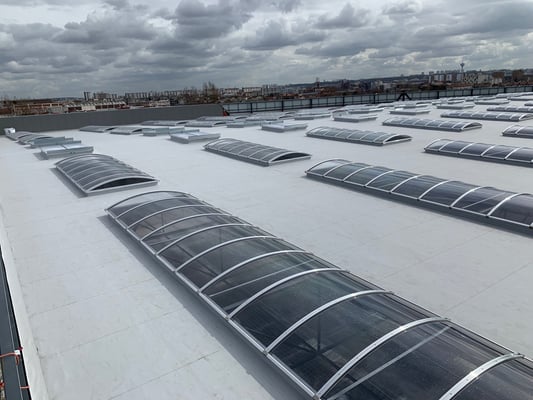 transparentes de la toiture du nouveau bâtiment PAPREC, notre client la société A2CB, étancheur a souhaité proposer une solution esthétique pour l'éclairage